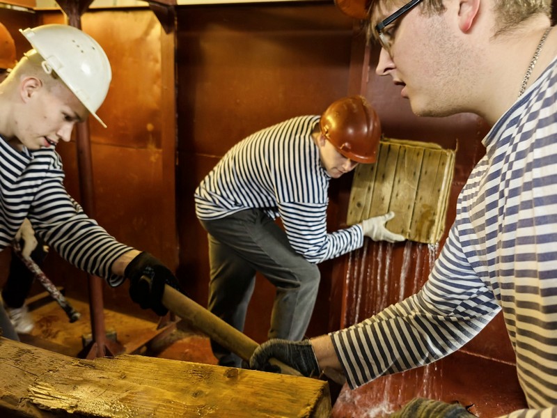 Во время практики курсанты учились эффективному взаимодействию и работе в команде, применять средства и системы пожаротушения, правильно действовать при возможных авариях на судах. Освоили навыки борьбы с водой при получении судном пробоин корпуса.