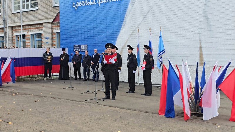 Мероприятие открылось официальным рапортом начальника училища Бресселя Эдуарда Артуровича директору филиала Шергиной Ольге Витальевне, после которого были внесены флаги и прозвучал гимн Российской Федерации.