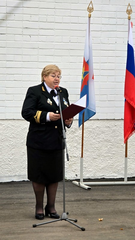 С поздравительной речью выступила Ольга Витальевна Шергина, директор Котласского филиала ГУМРФ. Она тепло поприветствовала новых курсантов и студентов, отметив важность выбранного ими образовательного пути и необходимость проявить усердие, трудолюбие и стремление к знаниям, а также пожелала первокурсникам вырасти в настоящих профессионалов своего дела и внести весомый вклад в развитие отечественного морского и речного флота.