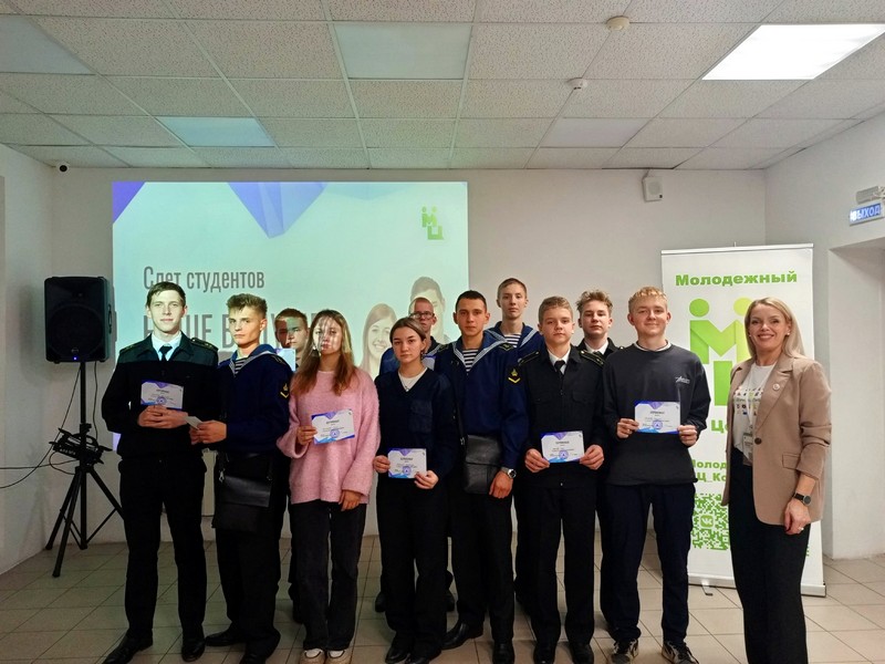 22 октября в Доме Молодёжи состоялся ежегодный слёт студентов «Наше будущее». От Котласского филиала ГУМРФ в слёте приняли участие обучающиеся: Гаренкова Диана (11-ИС), Никонов Даниил (11-ИС), Булгаков Артём (11-ЭР), Ожегов Илья (11-ЭР), Бессолов Леонид (31-СВ), Корюкаев Виталий (31-СВ), Мальцев Вячеслав (11-ВП), Волков Савелий (11-ВП), Чебыкина Александра (11-ВП), Брусков Владислав (11-СВ), Мокрецов Даниил (11-СВ).